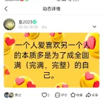 一个人爱喜欢另一个人的本质多是为了成全圆满(完满,完整)的自己。