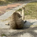 消失了两天它又出现了,肚子小了一点点,但是下垂。不知道它把小猫安置在哪,希望它们可以安稳度过2024年最后一个台风。又过了两个月,始终没有见到小猫们,食堂阿姨说见过一次,它不想带出来可能是因为以前有一个孩子不小心在食堂门口出车祸了所以很小心吧。