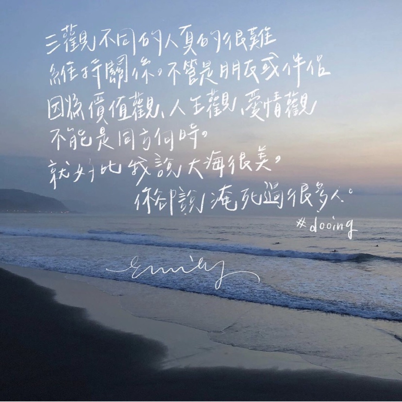 每個人的觀點都不同,能維持在同一個平衡點真的不容易,可惜⋯⋯還沒遇到那個⋯⋯妳⋯⋯⋯